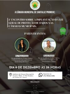 A Câmara Municipal de Santaluz realiza o 1° Encontro sobre a Implantação da LGPD nas Câmaras
