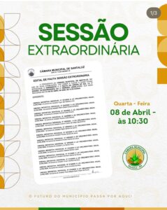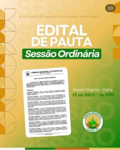 A Câmara Municipal de Santaluz realiza na próxima terça-feira, 31 de Março, às 09h, a 6ª